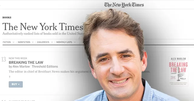 Breitbart News Editor-in-Chief Alex Marlow’s latest book “Breaking the Law: Exposing the Weaponization of America’s Legal System Against Donald Trump” has made a powerful impact on readers and critics alike. The investigative blockbuster has been hailed by President Trump as a “must read” and has already landed on the prestigious New York Times Best Sellers list in its first week of release.